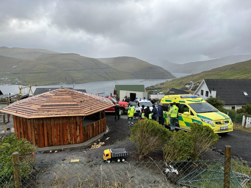 Vestmanna kommuna og dagstovnaøkið takka sjúkraflutningstænastuni, politinum og Vestmanna Sløkki- og bjargingarliði fyri vitjanina í dag.