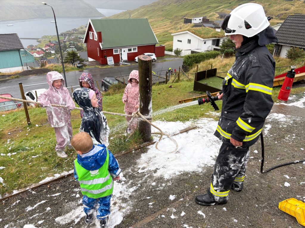 Sløkkilið, politiið og starvsfólk hjá sjúkraflutningstænastuni vitjaðu fyrst í Gjáarlon hjá teimum yngru børnunum, og síðan hjá teimum eldru børnunum, har tey sluppu at síggja inn í bilarnar, tendra sirenur og spula við slanguni hjá sløkkiliðnum.