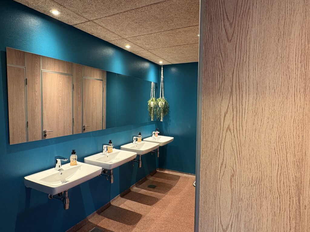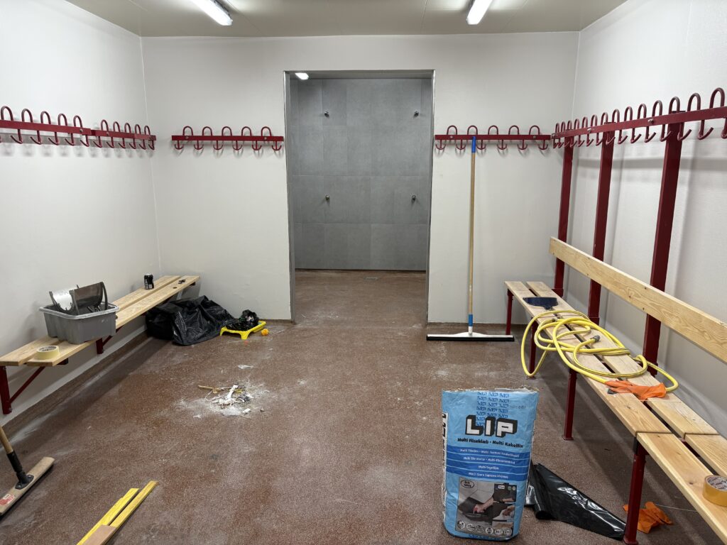 Skiftingarrúmini í høllini eru eisini dagførd, alt vvs er skift út og serliga kemur tað væl við, at kranarnir nú eru sjálvvirkandi, so tað slepst undan harpiksi á handtøkunum. Skiftingarrúmini eru eisini málaði, træbenkurnir eru hølvaðir og smurdir av nýggjum og byrjað er uppá at skifta flísarnar í brúsurúmunum.