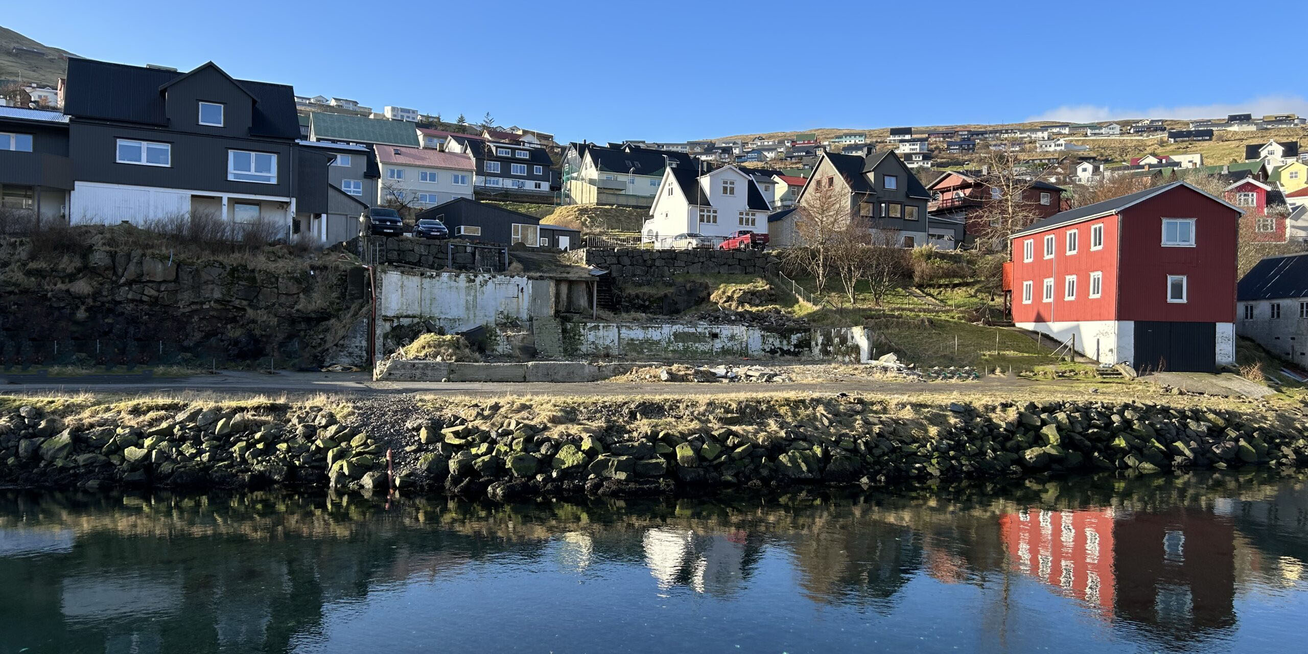 Økið liggur í einum friðarligum umhvørvi niðri við sjógv og við fríum og góðum útsýni út á fjørðin.