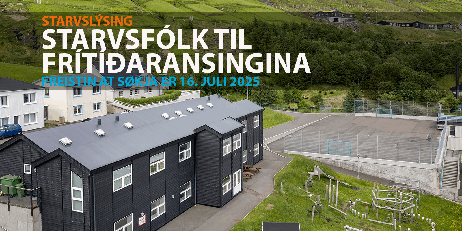 - Søkt verður eftir einum námsfrøðingi í eitt tíðaravmarkað farloyvisstarv á 20 tímar um vikuna fram til 31. mars 2026.