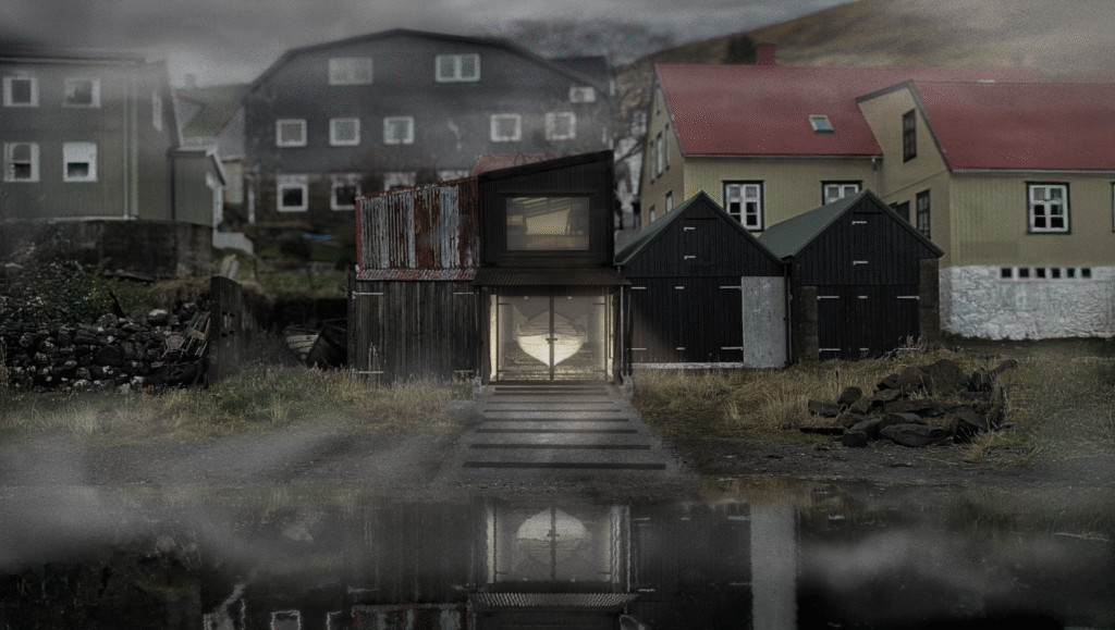 – Sniðuppskoti er einfalt, við denti á, at báturin skal vera lætt sjónligur uttanífrá, men vardur fyri veðri og dagsljósi. Alt er hugsað í samljóð við grannalagið og hini neystini. Tað einfalda tryggjar, at hvíti báturin, við grønum og gulum strípum, skilir seg frá og verður sjónligur, sigur Laila Mote.