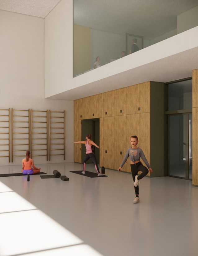 Í uppskotinum er ætlanin at gera tøknirúmið til svimjihylin inn móti fimleikahøllini. Tað inniber, at fimleikahøllin fer úr áleið 110 fermetrum niður í 100 fermetrar.