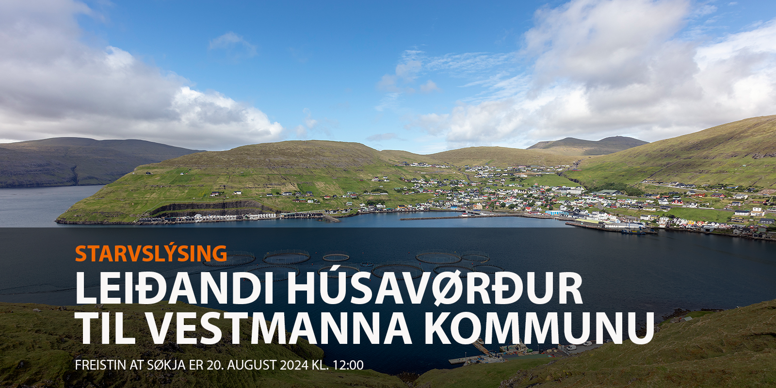 Vestmanna kommuna søkir eftir leiðandi húsavørði til kommunalar bygningar at byrja 1. septembur 2024 ella eftir nærri avtalu.