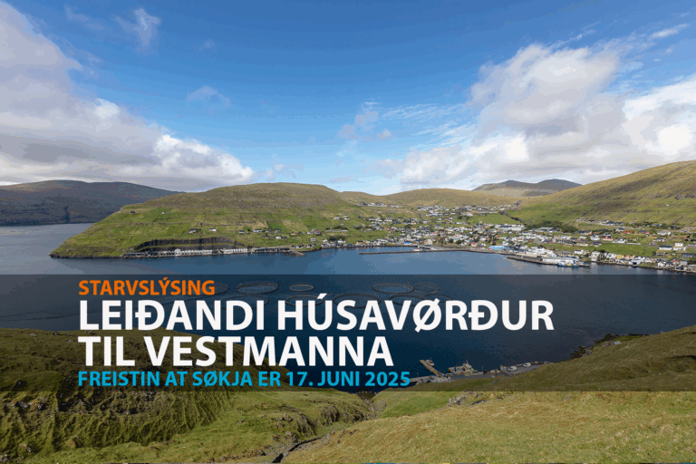 Vestmanna kommuna søkir eftir leiðandi húsavørði at byrja 1. september 2025 ella eftir nærri avtalu. Sum leiðandi húsavørður hevur tú ábyrgdina av viðlíkahaldinum av kommunalu bygningum, nýgerð, bæði inni og úti, nýtslu av teimum, samskipan av vasking í ávísum bygningum, at tekniskar skipanir virka og at menna húsavarðartoymið. Avgerð um setan verður grundað á eina…