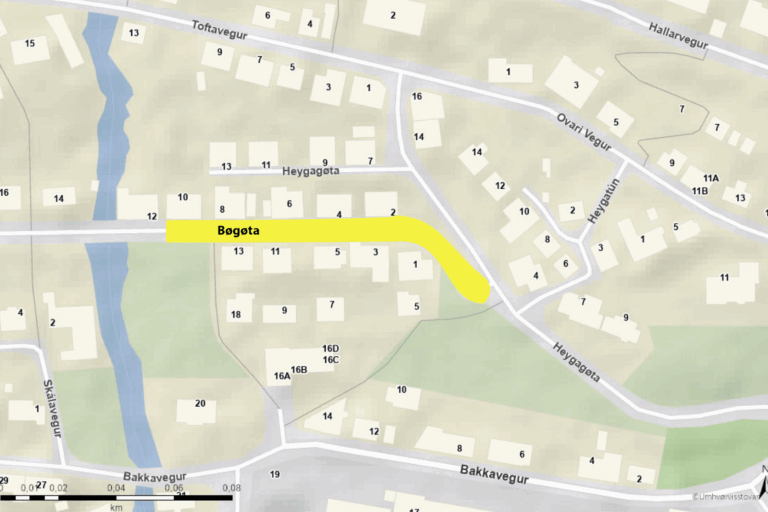 Í samband við vegarbeiði og arbeiði at gera nýggja gongubreyt, verður heitt á fólk um ikki at parkera á vegnum, frá Bøgøtu 12 yvir til Heygagøtu, frá í morgináirin, mikudag 25. juni, til arbeiðið er liðugt.