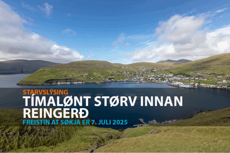 Vestmanna kommuna sóknast eftir dugnaligum reingerðarfólkum at arbeiða nakrar tímar um vikuna. Eitt reingerðarfólk til frítíðaransingina í Kongskjallarinum at arbeiða tveir tímar hvønn gerandisdag, í dagtímunum, aðru hvørja viku (ólíka viku). Eitt ella fleiri reingerðarfólk at arbeiða í Gjáarlon. Tørvurin er 3,5 tímar hvønn gerandisdag frá klokkan 17:00, men arbeiðið kann býtast millum fleiri umsøkjarar.…