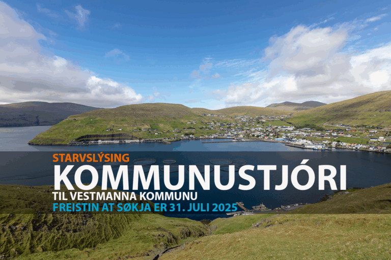 Vestmanna kommuna sóknast eftir einum visionerum kommunustjóra, ið vil vera við at føra kommununa enn longur fram á leið. Kommunustjórin er næsti ráðgevi hjá bygdarráðnum og borgarstjóranum, og starvið er bygnaðarliga skipað sum ovasti umsitingarleiðari hjá kommununi beint undir borgarstjóranum. Kommunustjórin er starvsfólkaleiðari hjá áleið 80 fólkum. Vestmanna kommuna hevur ein greiðan og vælskipaðan…