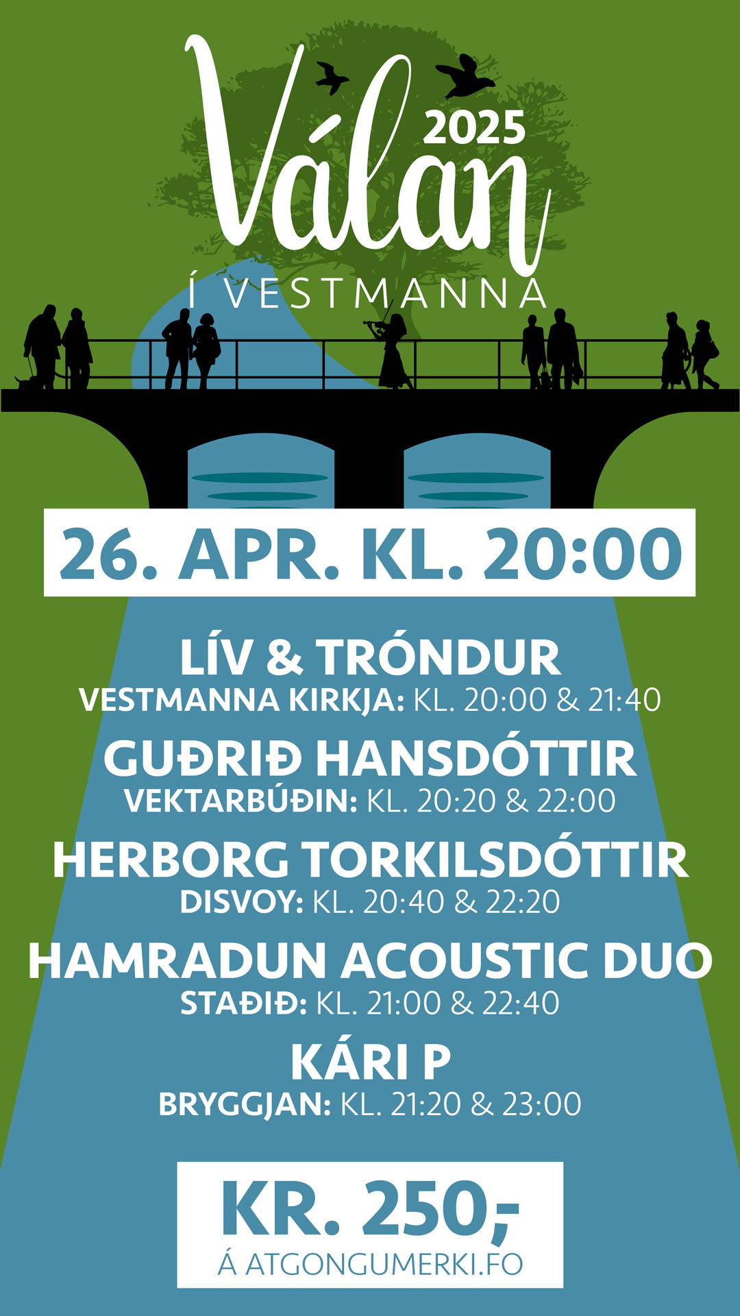 2025Ley26Apr20:0023:3020:00 - 23:30(GMT+00:00) BólkurTiltøkVálan í Vestmanna